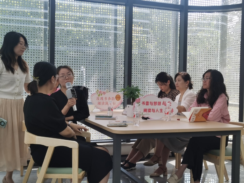 分享环节中,我校李新英老师、韩慧璇老师以及孙玉鹏老师分别就这三部作品进行了深入的阅读心得分享。她们从不同角度剖析了书中人物的命运轨迹,展现了女性在家庭、社会中的坚韧与柔情,引起了在场书友的强烈共鸣,使大家更加深入地理解和感受到三本书中蕴含的文学内涵和力量情感。