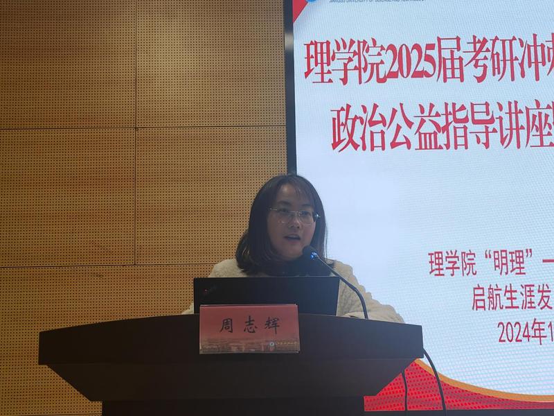 12月6日下午,理学院在图书馆B105报告厅举办2025届考研冲刺阶段备考英语、政治公益指导讲座暨动员慰问活动,为考研学子们送上最暖心的鼓励和最真挚的祝福。理学院院长戴俊,2025届毕业班班主任和辅导员以及2025届考研学子参加了本次活动。活动由院党委副书记周志辉主持。