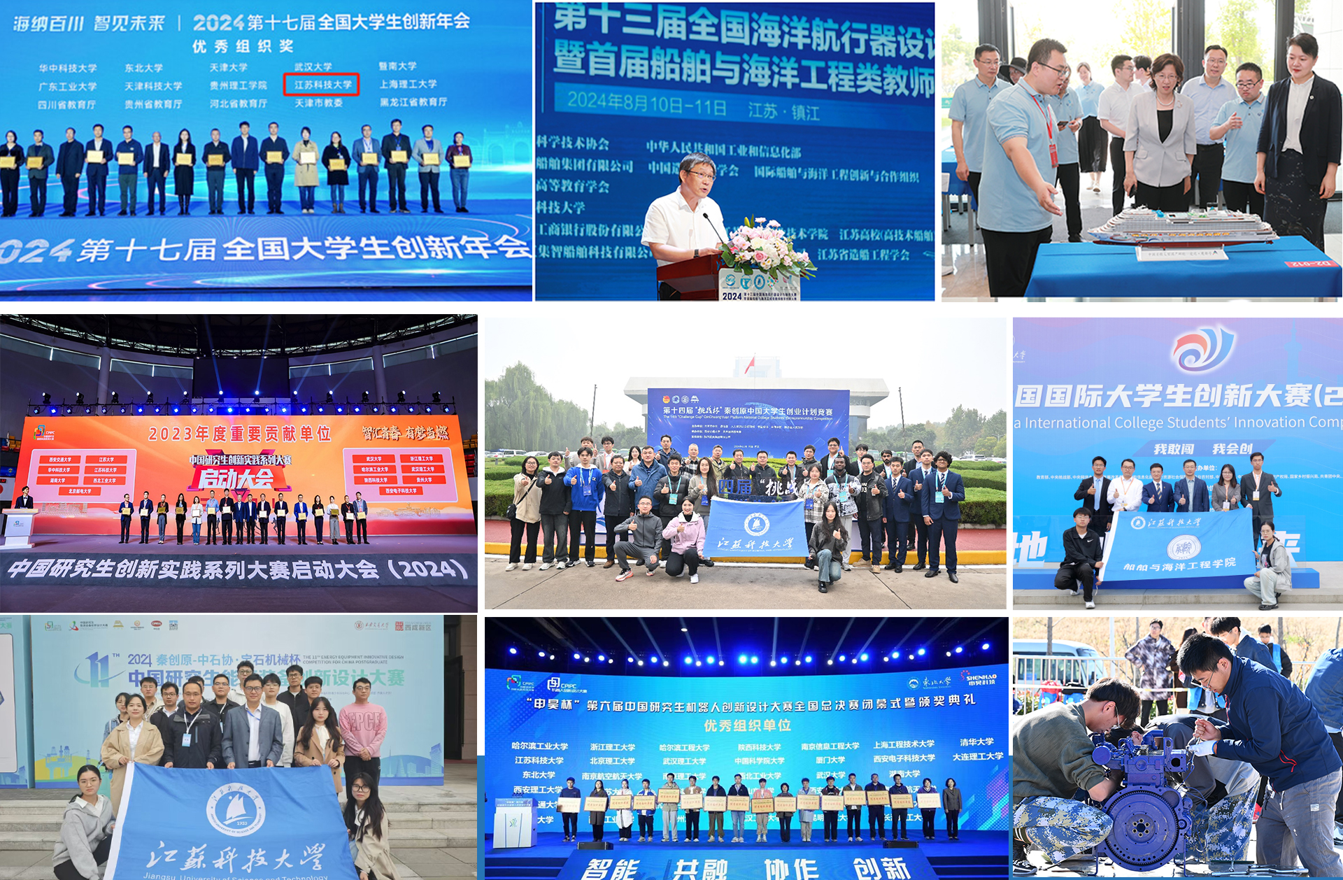 学校位列全国普通高校大学生竞赛榜单(本科)第67位。获评中国研究生创新实践系列大赛年度重要贡献单位,贡献力位列全国第4。在中国国际大学生创新大赛(2024)中获得金奖5项,其中高教主赛道金奖数位列全国第6,江苏第1。获第七届中国青年志愿服务项目大赛金奖,获“挑战杯”秦创原中国大学生创业计划竞赛金奖2项。在2024第十七届全国大学生创新年会中获得优秀组织奖。获“高教社杯”全国大学生数学建模竞赛全国一等奖2项。首获中国研究生数学建模竞赛“数模之星”全国亚军。举办第十三届全国海洋航行器设计与制作大赛暨首届船舶与海洋工程类教师教学创新大赛。