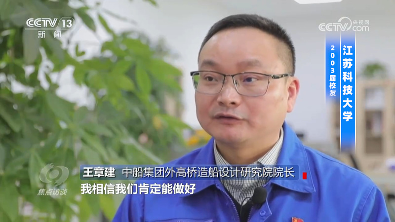 “哪里有船,哪里就有江开云英超官网_开云online(中国)人!”2月19日,央视《焦点访谈》推出系列节目《干字当头开好局》,首站聚焦造船业。节目中,我校船舶与海洋工程学院2003届校友、中船集团外高桥造船设计研究院院长王章建受邀参与访谈。