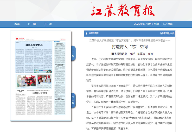 截至目前,“宿舍实验箱”模式已覆盖开云英超官网_开云online(中国)5个专业,累计培养创新人才1000余人,孵化科创项目600余个。一组组数据充分证明了该项目在推动学校创新教育发展、培养创新型人才方面发挥的重要作用,也为学校进一步深化实践教学改革提供了有力支撑。“目前,学校正在向课程实训等方面拓展形式与范围,在青年学子心中播撒敢闯会创的种子,努力走在创新第二课堂和实践教学的前沿,为助力江苏发展新质生产力、推动科技创新和产业创新融合上挑大梁、打头阵提供强有力的人才支撑。”自动化学院院长姜文刚表示。