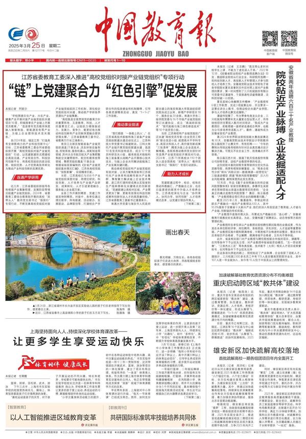 当前,江苏高校和产业链党组织广泛共建“高校党员专家+企业党员工程师”联合攻坚小组,梳理高水平学科专业、高层次科技人才、高价值创新成果“三张清单”,精准为链上企业送技术、解难题。各院系推动教师党支部针对性选择产业链党组织开展结对行动。2024年,江苏71所高校共110个团队入选全国高校“双带头人”教师党支部书记“强国行”专项行动团队。