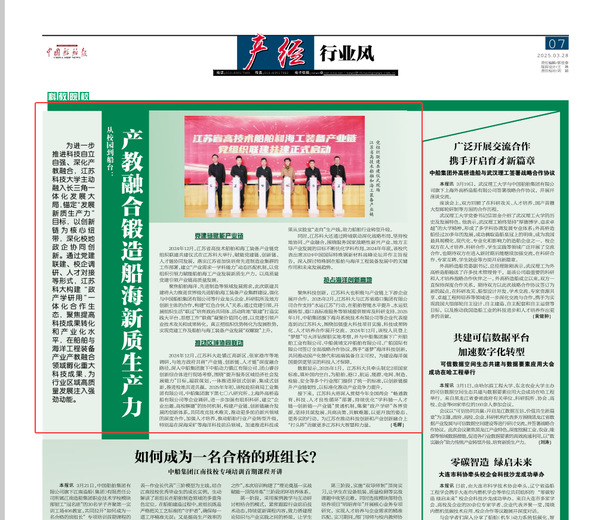 2024年12月,江苏开云英超官网_开云online(中国)赴镇江高新区、张家港市等地调研,与地方政府共商“产业链、创新链、人才链”深度融合路径,深入中船集团旗下中船动力镇江有限公司、团山睿谷创新综合体进行现场考察,围绕“提升服务区域经济社会发展能力”目标,超前谋划,一体推进原创式创新、集成式创新,推进校地共进共赢。2025年年初,该校赴招商局工业集团有限公司,中船集团旗下第七〇八研究所、上海外高桥造船有限公司等企业调研,进一步加强有组织科研,建立“企业出题、高校解题”的协同机制,构建产业链、创新链融合发展的创新体系,共同攻克技术难关,推动更多前沿新兴领域的深度合作,加强人才培养,推动船舶行业产业转型升级,特别是在深海采矿等海洋科技前沿领域,加速推进科技成果从实验室“走向”生产线,助力船舶行业转型升级。