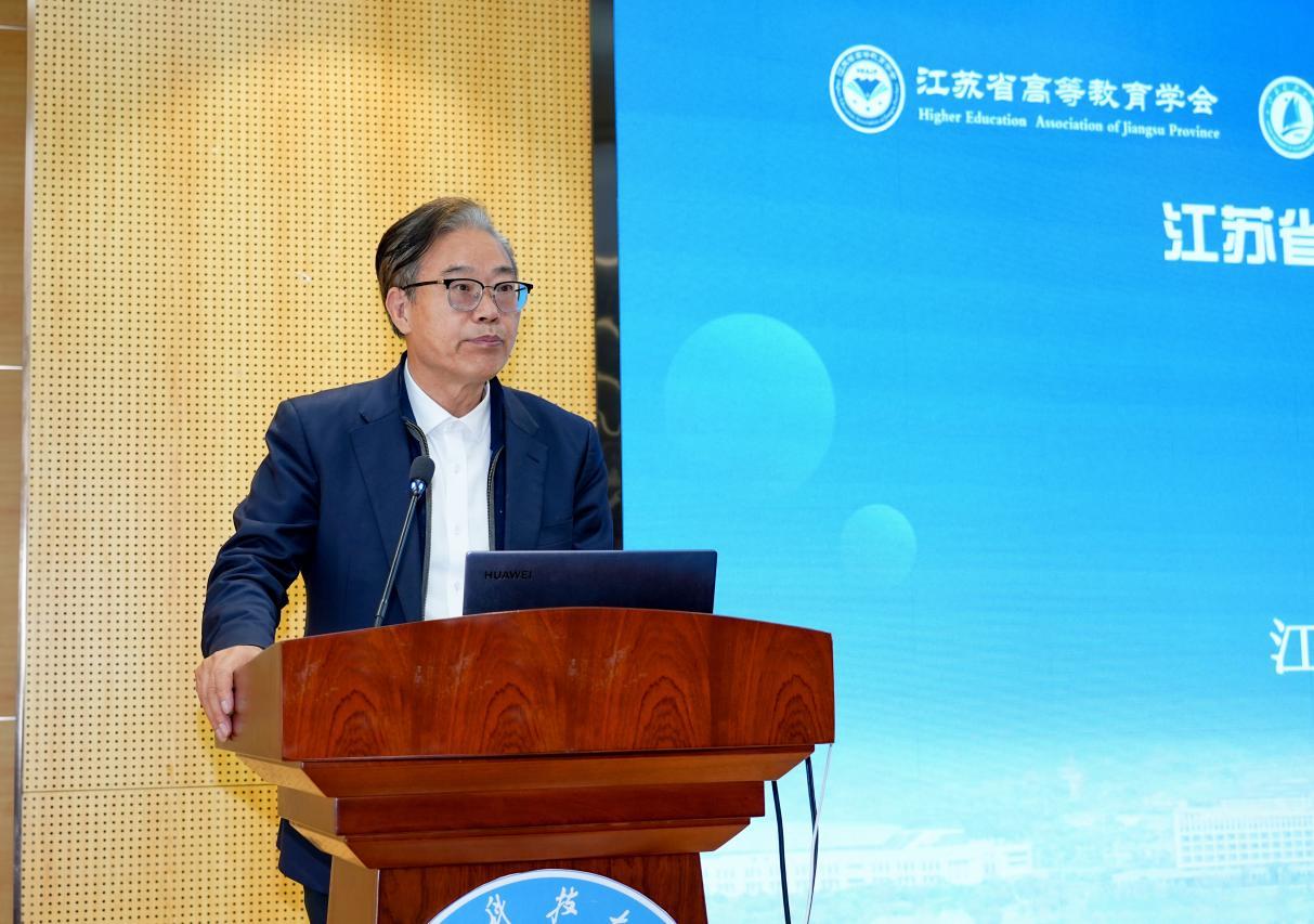 杨建新致欢迎辞,向参会人员介绍了学校的基本情况和办学特色。他指出,人工智能不仅是技术创新的产物,更是推动教育进步、促进人才培养的强大动力。本次会议以人工智能赋能高等教育为研讨主题,具有鲜明的时代性和重要的现实价值,相信研讨成果将推动江苏省高等教育事业工作再上新台阶。