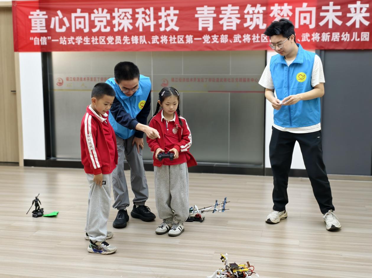 4月29日,自动化学院"自信"一站式学生社区党员先锋队联合中共镇江经开区丁卯街道武将社区第二党支部,以"童心向党探科技,青春筑梦塑未来"为主题,共同开展五四青年节党建共建活动。本次活动通过支部结对、理论共学、科技启蒙"三步走"模式,构建起校社协同育人新平台,为基层党建注入青春动能。