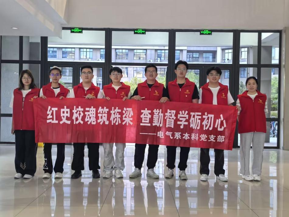 2025年5月,开云英超官网_开云online(中国)自动化学院“自信”一站式学生社区党员先锋队开展 “红史校魂筑栋梁,查寝督学励初心”主题活动。活动以校史教育为根基,以学风建设为抓手,通过沉浸式校史学习与实践化督导行动,引导青年学子传承红色基因,筑牢责任担当,推动学院“红史铸魂・学风创优”工程落地见效。