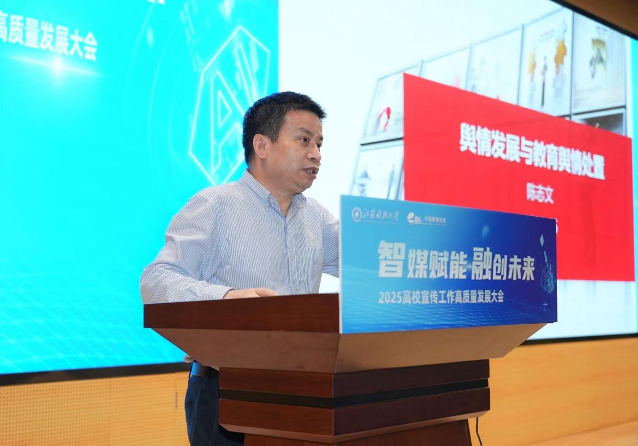 陈志文在主题报告《舆情发展与教育舆情处置》中,从政策高度剖析全媒体时代高校面临的舆情挑战。他指出:“教育舆情具有敏感性和扩散性双重特征,高校需构建‘数据驱动预警+人文价值引领’的处置体系。”