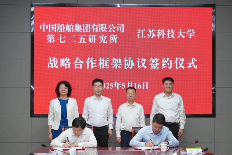 5月16日,中国船舶集团有限公司第七二五研究所所长王其红一行来我校交流,校所双方在行政楼200号会议室进行座谈交流并举行战略合作协议签约仪式。校党委书记杨建新、校长嵇春艳出席活动,副校长胡爱祥主持签约仪式。