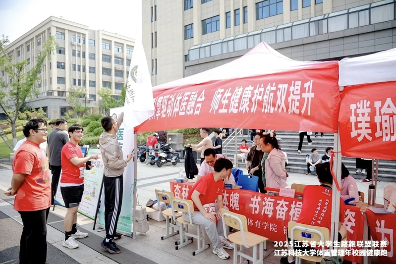 体育学院党建联盟单位镇江359医院为赛事提供急救服务,医疗团队配备AED除颤仪全程待命,20余名持有急救证书的“急救跑者”为赛事保驾护航。