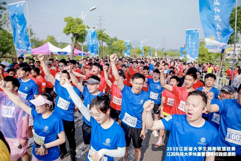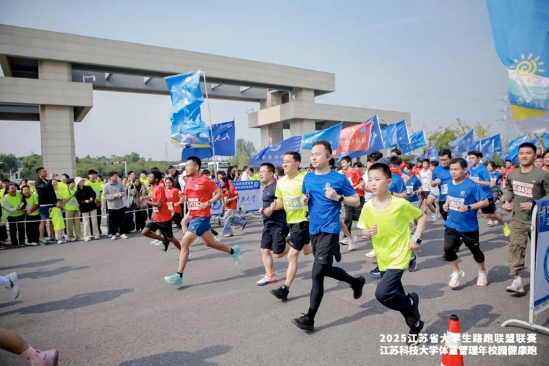 5月24日清晨,我校长山校区在晨曦中迎来运动热潮,2025江苏省大学生路跑联盟联赛暨江苏科技大学体重管理年校园健康跑在此鸣枪开赛。本次活动以“科学运动强体魄,青春逐浪启新程”为主题,吸引了2500名师生、校友共同参与,通过竞技路跑与体重管理深度融合,打造了一场青春活力与科学健康交织的校园体育盛会。