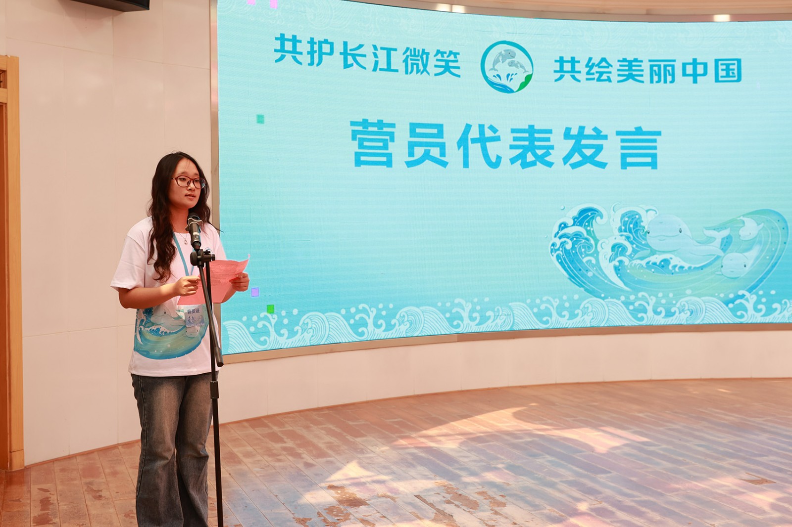 校团委书记张海洋代表主办单位致辞。他向来自五湖四海的营员表示热烈欢迎,希望大家充分利用夏令营平台,深刻认识党的领导、制度优势和人民力量在江豚保护中的重要作用,坚定不移听党话、跟党走,到长江边亲身感受“长江大保护”的伟大成就,领悟美丽中国建设的生动实践,把所学所思转化为实际行动,努力成为有理想、敢担当、能吃苦、肯奋斗的新时代生态文明建设者。