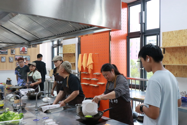后勤管理处、后勤集团组织新生与家长在学校共享厨房亲手制作“入学第一顿家宴”,并为当天报到的新生寿星准备了寓意万事顺遂的生日面,传递“学校即家”的温暖理念。