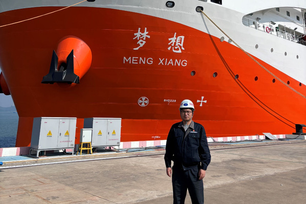 逐梦征途中,伍常斌用总书记贺信中提到的“开拓创新、团结协作、攻坚克难、勇攀高峰”的“梦想”号精神与学弟学妹共勉,他说:“期待母校能培养出更多的有志青年加入行业,与我们一起在建设海洋强国的征程中接续奋斗,为实现中华民族伟大复兴作出贡献!”