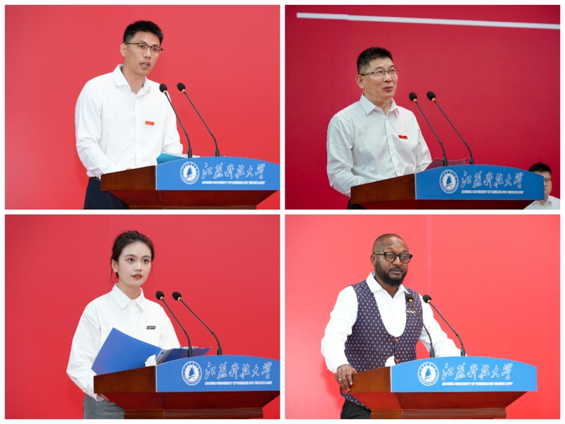 教师代表,国家级人才项目入选者、博士生导师、船舶与海洋工程学院程勇教授分享了自己的科研体会,鼓励新生“深入钻研专业核心,在自由探索中逐渐找到自己的热爱和所长,并朝着这个方向持续生根,锤炼精益求精的工匠精神”。校友代表,学校1985届电子计算机专业优秀校友、国泰新点软件股份有限公司总裁黄素龙深情回顾求学岁月,感恩母校培养,并结合个人成长和创业经历,勉励学弟学妹“唯有‘刀刃向内’,从自己的身上找问题、求突破,才能冲破困境、实现自我的持续提升”。2025级研究生代表、经济管理学院博士研究生包雪文同学作为学校首届本博贯通培养项目的亲历者,她号召新同学:以今日为起点,做扎根大地的研究者,做敢闯敢试的探索者。留学生代表,来自尼日利亚的船舶与海洋工程学院博士研究生王天佑同学畅谈对在校学习生活的期待,表示将努力钻研专业知识,争做连接中外友好友谊的桥梁。