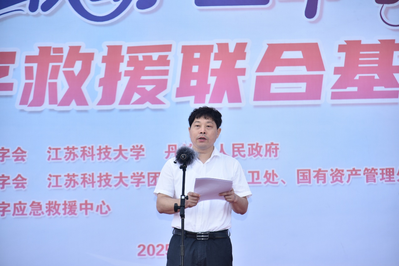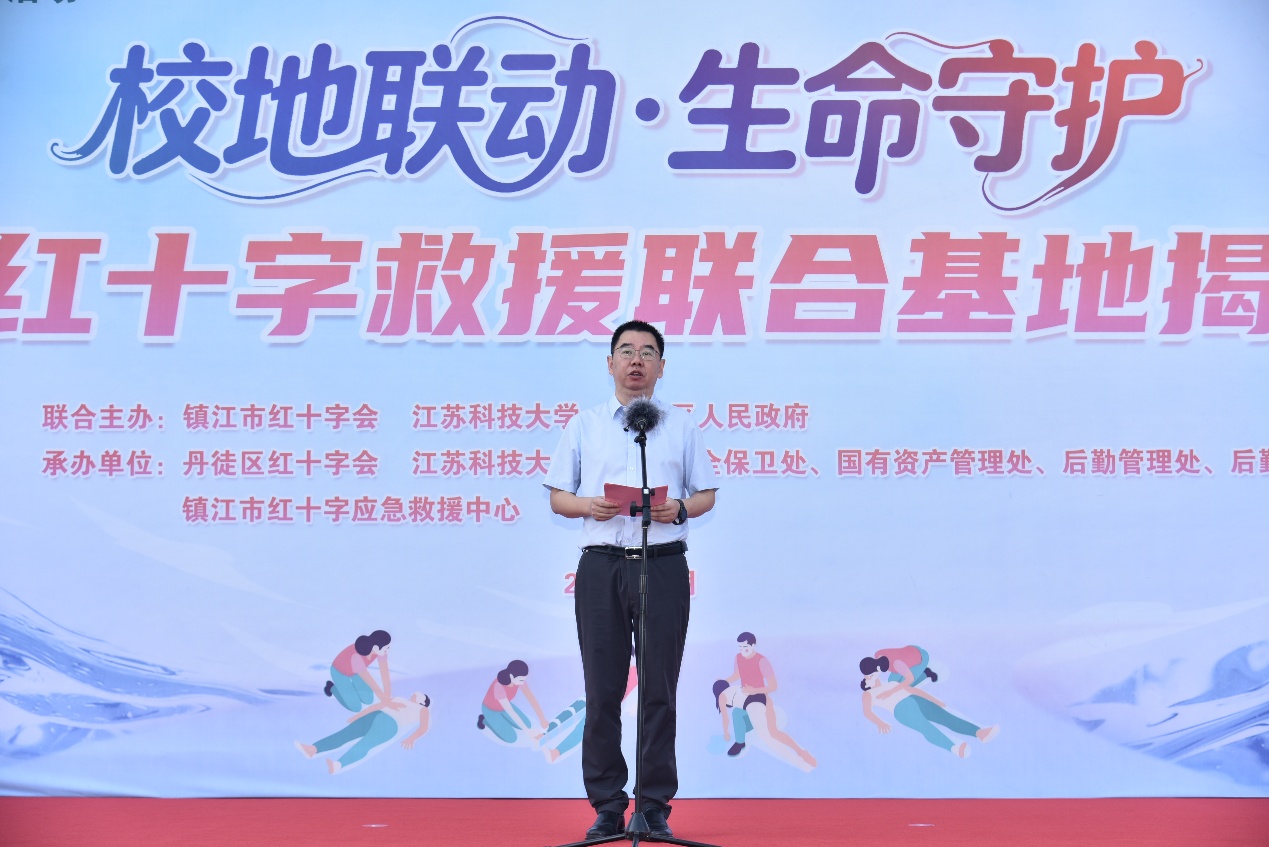 揭牌仪式上,胡爱祥首先发表热情洋溢的致辞。他指出,联合基地的建立是校地共建、资源整合的又一里程碑式成果,标志着学校与镇江市红十字会的合作迈入深度融合的新阶段。基地将充分依托学校长山校区的地理位置优势,以及在海洋装备、应急救援、公共安全等领域的学科科研与人才储备优势,精准整合市、区红十字会的专业救援力量与实践经验,着力打造一个集培训、演练、救援、科普于一体的综合性应急救援平台。这一平台的搭建,将有效提升区域应急救援救护的专业化水平,为校园师生及周边社区群众筑牢生命安全的“防护网”。