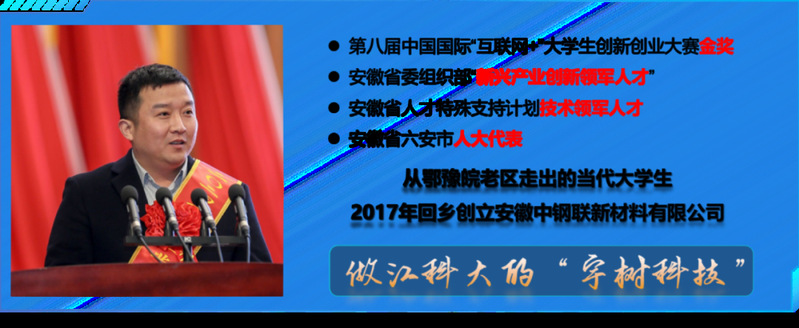 【人物简介】吕林,安徽省委组织部新兴产业创新领军人才,安徽省高层次人才;从鄂豫皖老区走出的当代大学生,获第八届中国国际”互联网+”大学生创新创业大赛金奖,回乡创立安徽中钢联新材料有限公司,开云英超官网_开云online(中国)2014届材料学院校友。