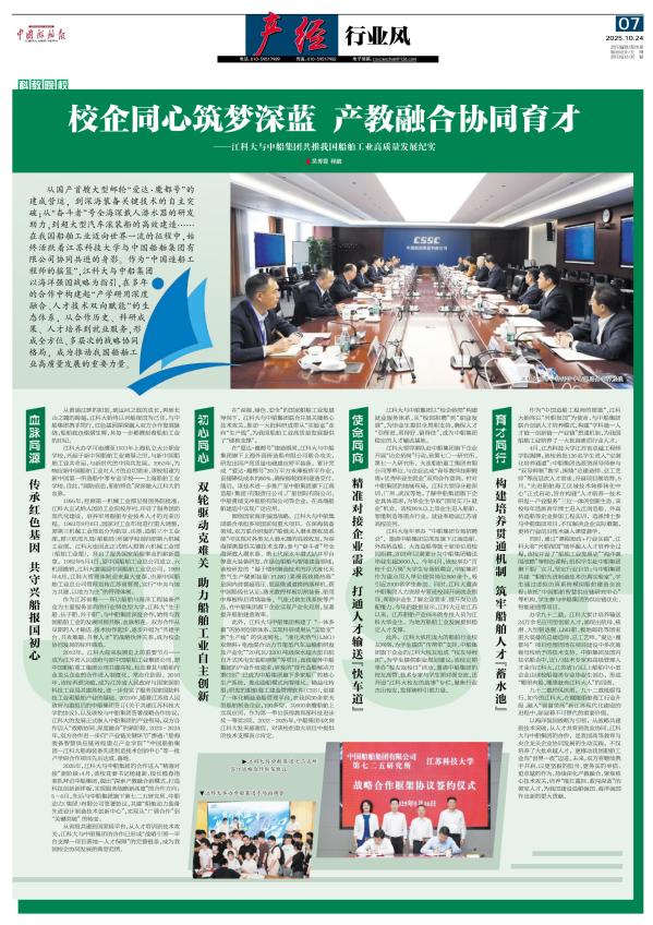 以海洋强国战略为引领,从战略共建到技术突破,从人才共育到就业协同,江开云英超官网_开云online(中国)与中船集团的合作,是我国高等教育与央企龙头企业协同发展的生动实践,不仅培养了大批卓越人才,更推动我国船舶工业向“世界一流”迈进。未来,双方将继续携手并肩,以更坚毅的担当、更务实的举措、更卓越的作为,持续深化产教融合,聚焦核心技术攻关,培养“能扛重担、敢闯深蓝”的领军人才,为我国建设造船强国、海洋强国作出新的更大贡献。(吴秀霞 程鹏)