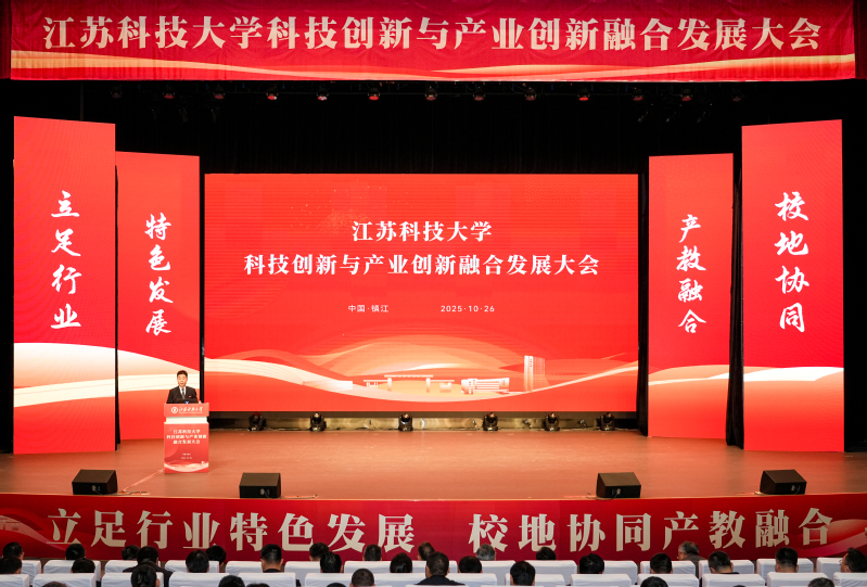 党的二十届四中全会刚刚胜利闭幕,为深入贯彻落实全会提出的“要加强原始创新和关键核心技术攻关,推动科技创新和产业创新深度融合,一体推进教育科技人才发展”的重要部署。10月26日,我校隆重举行科技创新与产业创新融合发展大会。中国工程院院士、中国船舶科学研究中心研究员吴有生,原农业部党组成员、中央纪委驻原农业部纪检组组长、中国品牌建设丝绸桑蚕品牌集群主席朱保成,工业和信息化部装备工业一司司长王卫明,中国船舶集团有限公司党组成员、副总经理赵同宾,国家粮食和物资储备局、安全仓储与科技司司长韩继志以及政府部门、科研院所、企事业合作单位、兄弟高校领导、校友师生代表、中国船舶集团第10期中层干部工商管理培训班学员等760余人齐聚一堂,为促进科技创新与产业创新深度融合,推动新质生产力发展注入新动能。